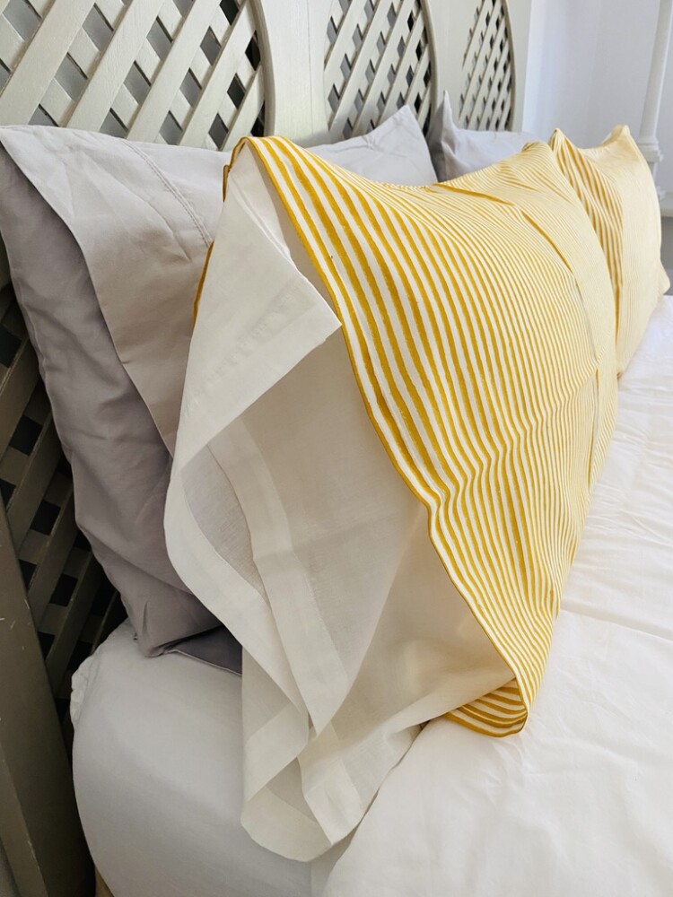 Add warmth, craftsmanship, and effortless style to your bedding with these Mustard Yellow & White Stripe Cotton Voile Pillowcases — designed to last and made with care.