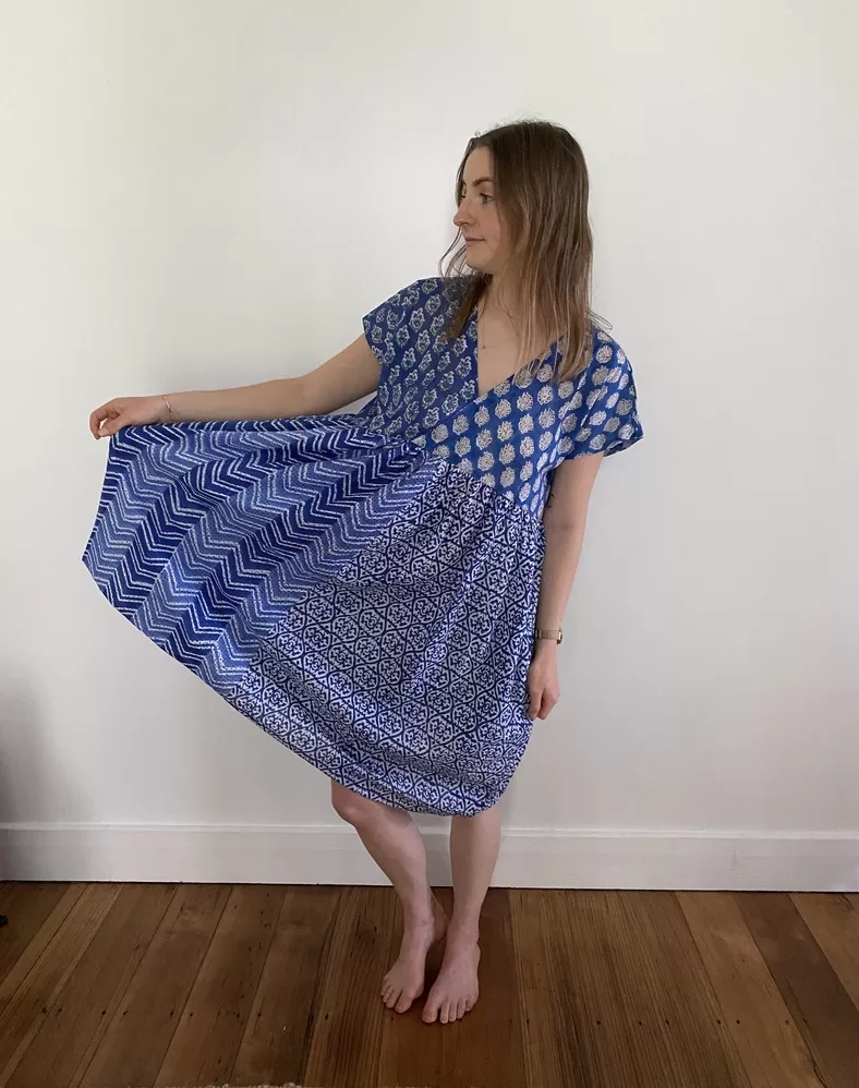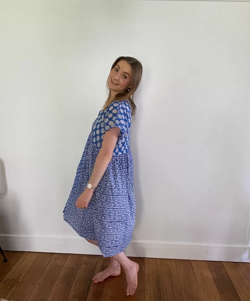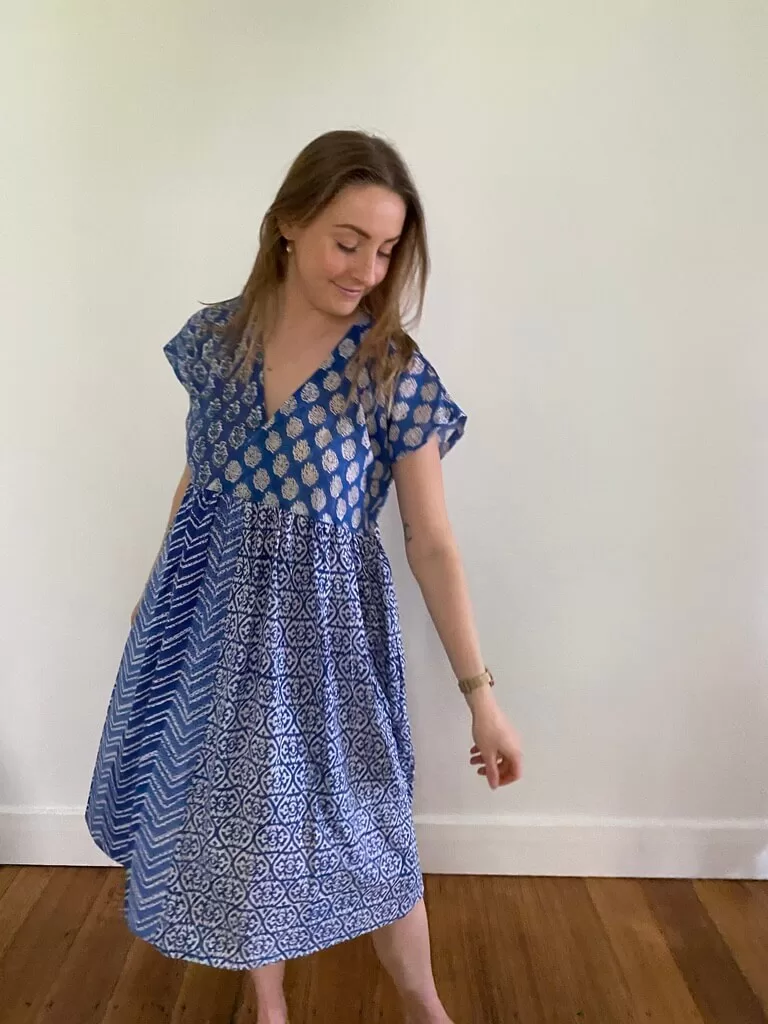 Introducing the perfect summer essential: the Blue Bohemian style Patchwork Block Printed Cotton Voile Dress. Made from soft and breathable cotton voile, this dress is a celebration of vibrant colours, ( shades of blue ), your go-to for warm, sunny days when comfort and style are equally important. The dress showcases a unique combination of traditional Indian block prints, each patch carefully selected to create a beautiful flow of patterns and shades of blue. With its lightweight and airy fabric, it feels effortlessly soft against the skin, keeping you cool even in the hottest weather. Dress up for a social evening or an easy slip on after the beach, and very easy to put in your beach bag.